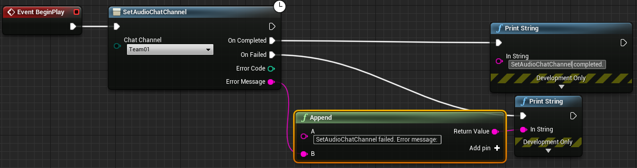 UE_LOG(LogIntegrationExample, Error, TEXT("SetAudioChatChannel failed. Error code: %d. Error message: %s"), ErrorCode, *ErrorMessage);