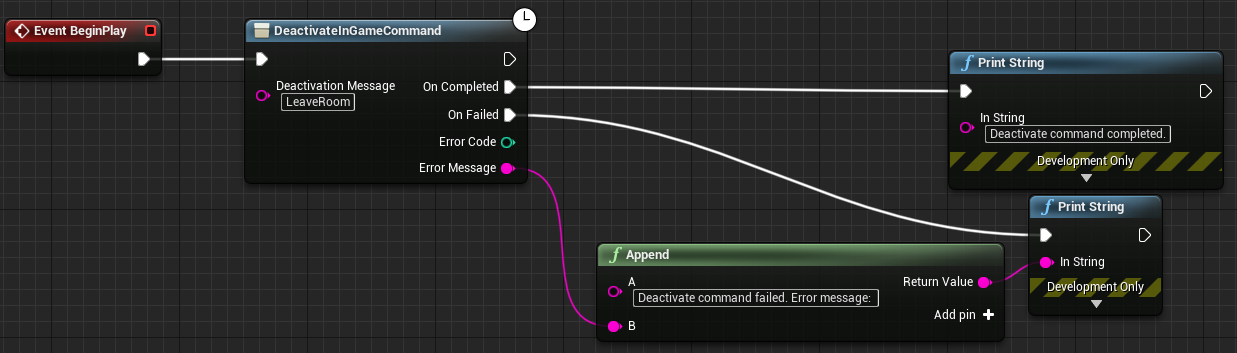 UE_LOG(LogIntegrationExample, Error, TEXT("DeactivateInGameCommand failed. Error code: %d. Error message: %s"), ErrorCode, *ErrorMessage);