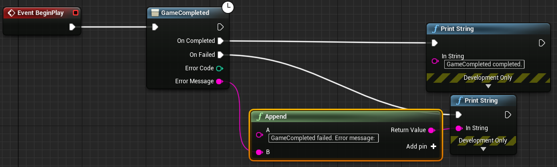 UE_LOG(LogIntegrationExample, Error, TEXT("GameCompleted failed. Error code: %d. Error message: %s"), ErrorCode, *ErrorMessage);