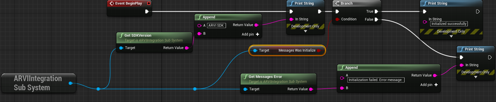 UE_LOG(LogIntegrationExample, Warning, TEXT("Initialization failed. Error message: %s"), *ArviIntegration->GetMessagesError());