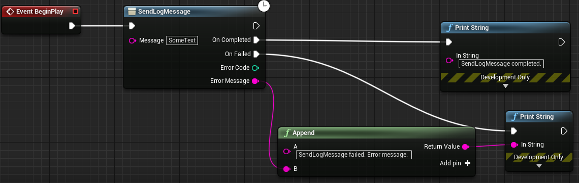 UE_LOG(LogIntegrationExample, Error, TEXT("SendLogMessage failed. Error code: %d. Error message: %s"), ErrorCode, *ErrorMessage);