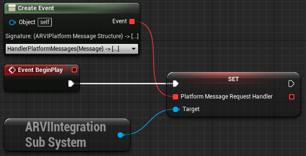 Below is a list of methods for interacting with the platform. For C++, these are methods of the UARVIIntegrationSubSystem class object. For Blueprint, these are asynchronous nodes that do not require an object reference.